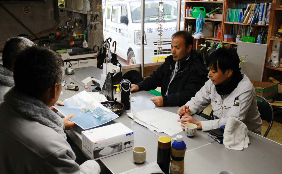 仕事は上下水道設備・配管工事、修理などですが、一概に言えず非常に幅広くさせてもらっています。各種申請書類の作成もしますし、工事現場の監督をすることもあります。何でもやるのが自社社員の強みであり、やりがいでもあると思います。
